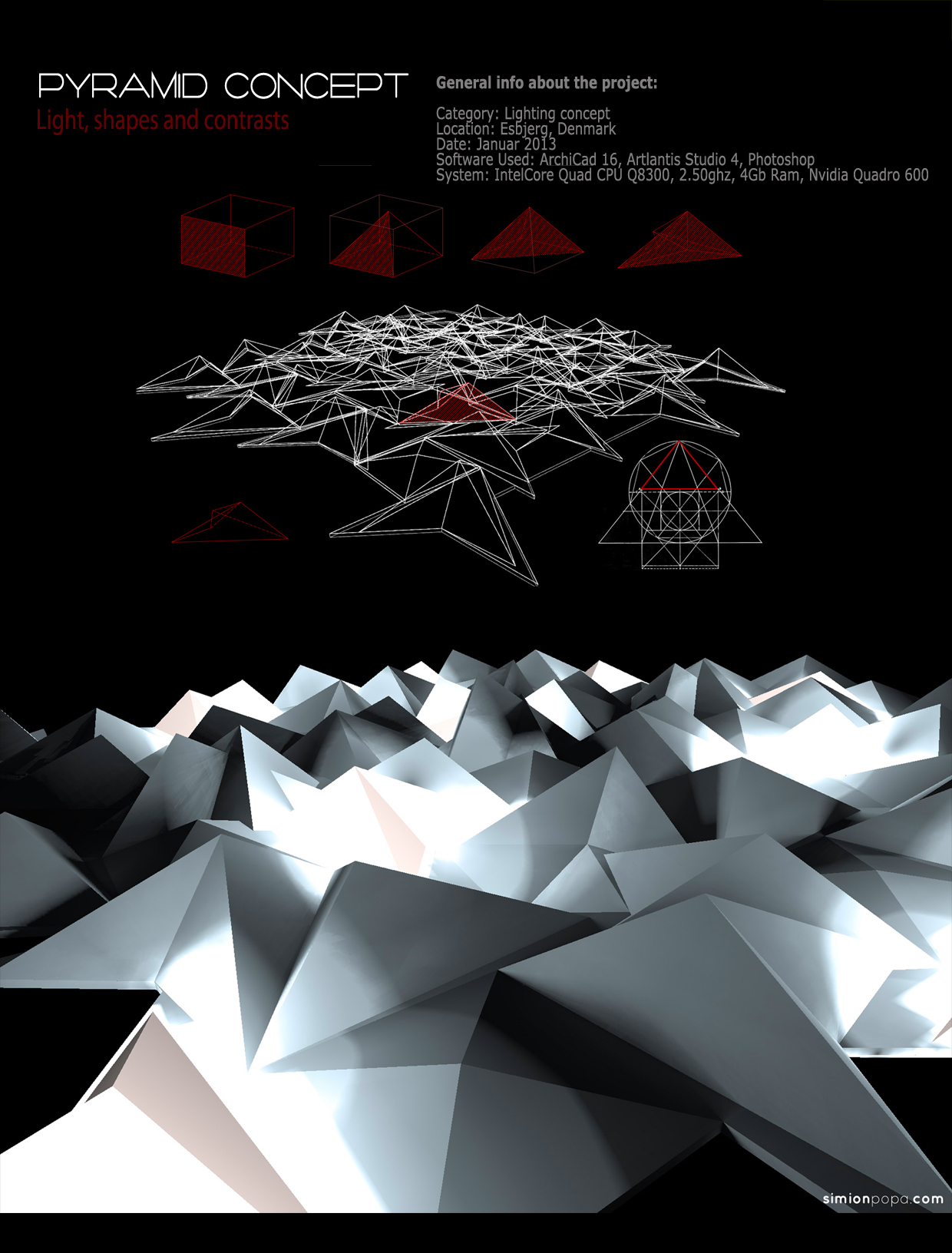 Pyramid is a conceptual lighting design that demonstrates the source of inside energy, light and shine through reflective waves.